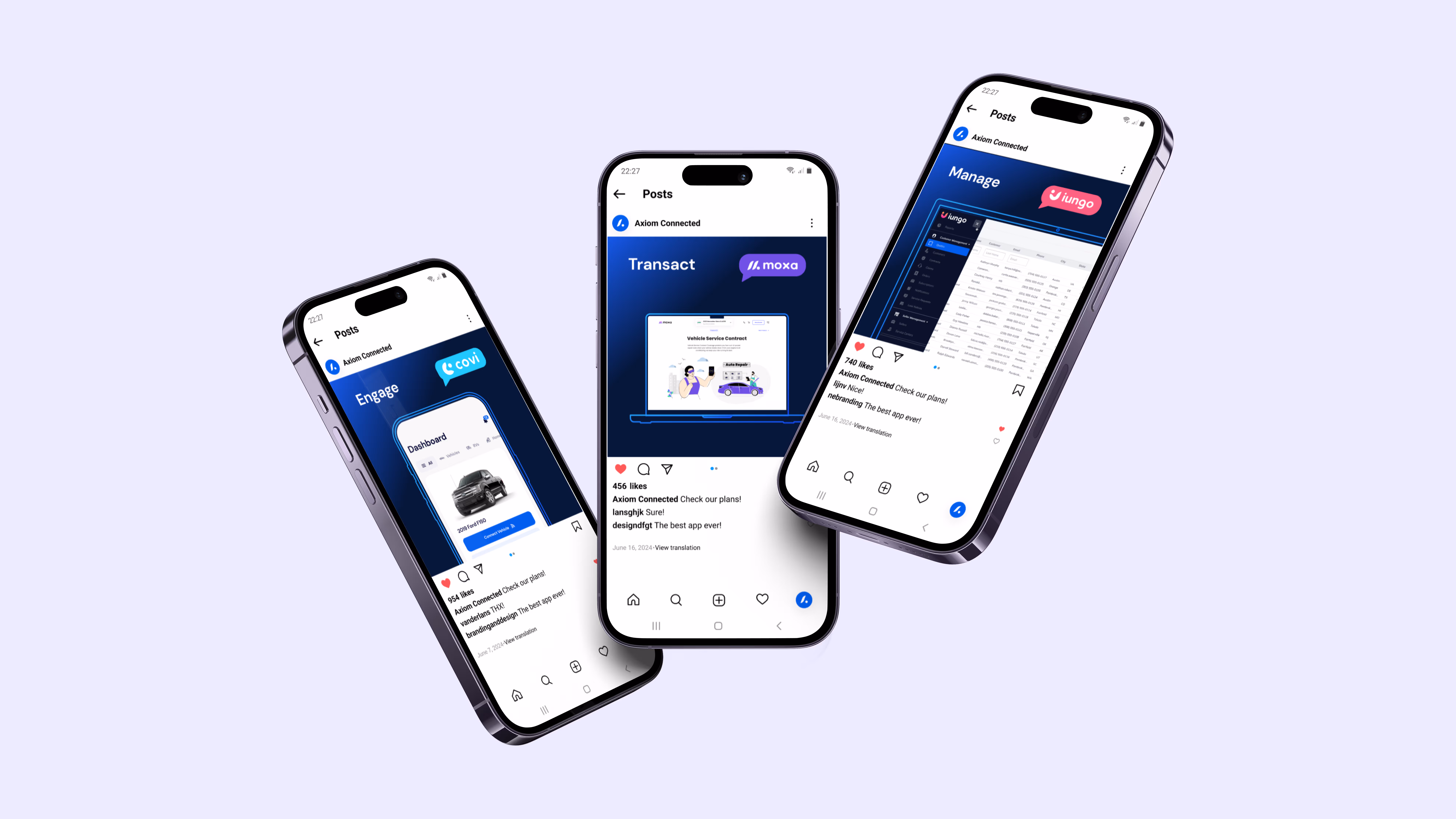 Axiom Connected — a multi-product B2B SaaS ecosystem operating across mobility, insurtech, and emerging technologies. We developed visual systems, presentations, and marketing assets to support product clarity, positioning, and scale.